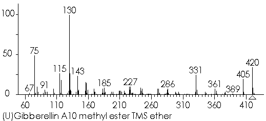 Mass Spectrum of Gibberellin A10 methyl ester TMS ether.