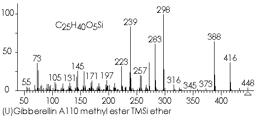 Mass Spectrum of Gibberellin A110 methyl ester TMS ether.