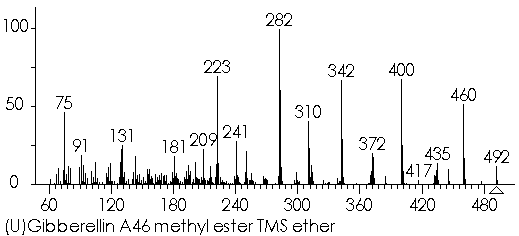 Mass Spectrum of Gibberellin A46 methyl ester TMS ether.