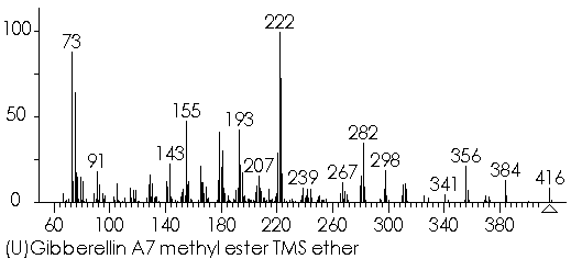 Mass Spectrum of Gibberellin A7 methyl ester TMS ether.